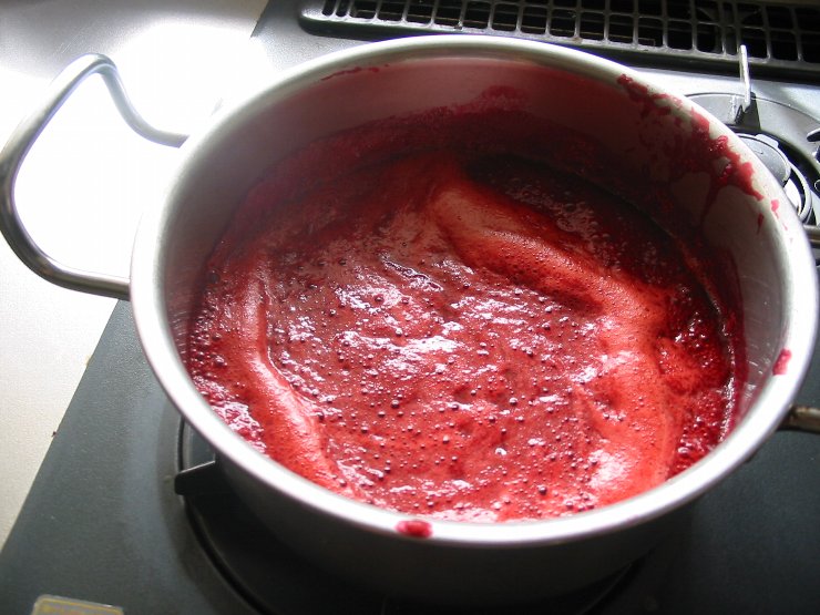 写真は ブラックベリーを今年初めて ジャムのような ジュースのような にしました。