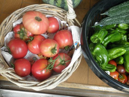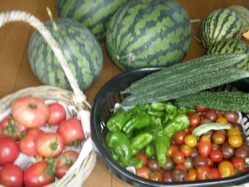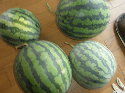 大きいのが 一個 7.5キロありました。お店のスイカに負けないぐらいの大きさ。
