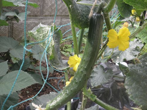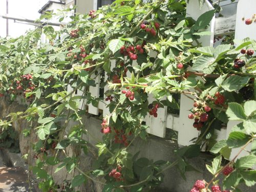 庭では 今、 花と スイカ トマト キュウリ マルベリー ラズベリー