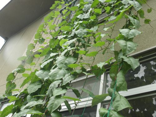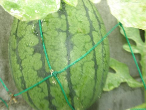 去年は 庭のなかの スイカもからすに食べられたので 今年は ネットを被せました。