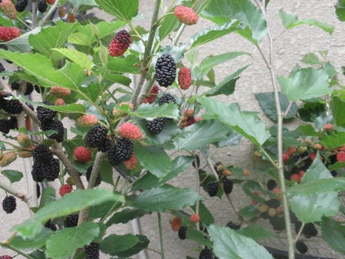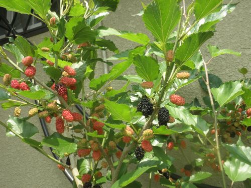 ブラックベリーが 少しずつ 黒くなってきました。 もうすぐ 収穫して ジャムにします。忙しくなります。 バジルも種から育てています。
