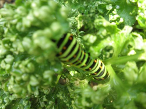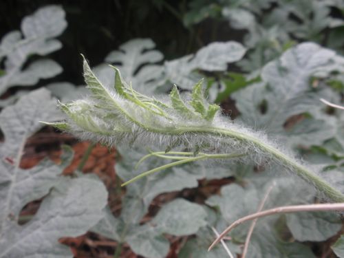 水色 あげはの幼虫   スイカの つるが どんどん伸びて行きます。
