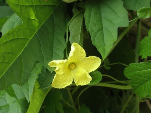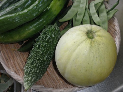 ゴーヤの花。 香りがとっても良いです。 昨日、 11歳の孫の家へ エサレンマッサージに行きました。我が家の ハーベストを食べてねと。