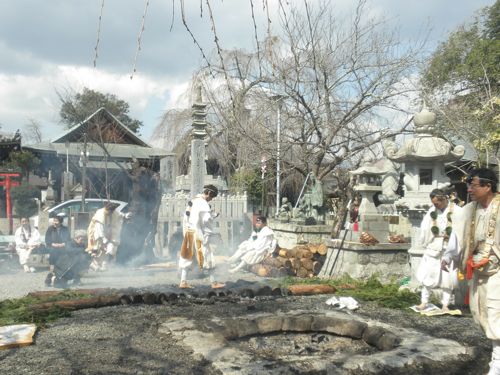 護摩焚きの後の炭火渡りも体験しました。