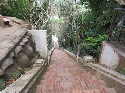 途中で反対方向に上っていくバイクに1台、出会っただけ。たくさんの観光客は 来た道の階段を下っていたのかしら。