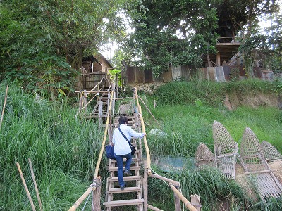竹の橋。毎年 流されるので 毎年作るとのこと。渡って向こう岸の村へ行きました。