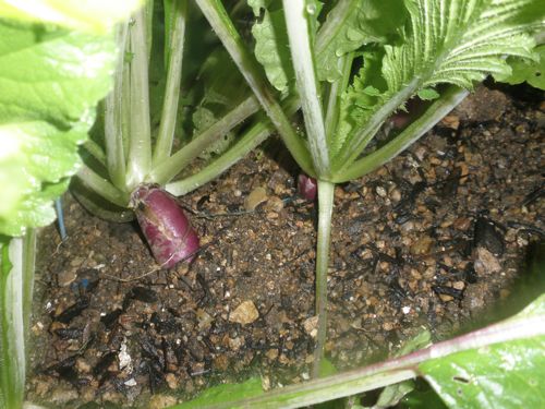 赤大根 日に日に太ってきて。 普通の大根 シュウメイ菊が満開  スイスチャード ホトトギスたち ツワブキ。 先日 久しぶりに履いたヒール。