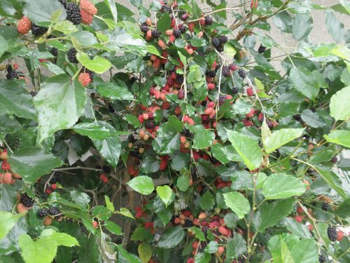 庭のマルベリー。たわわに実をつけています。