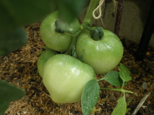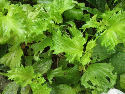 スイスチャード 青シソ トマトが そろそろ色づいてきた。