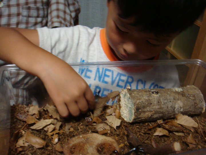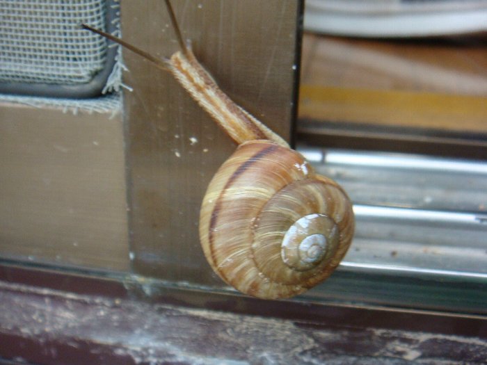 前に 孫が 来たときに 近くの山で 孫と捕まえたカタツムリ。