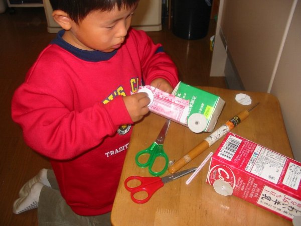 4歳の孫のおもちゃは その辺にあるものばかり