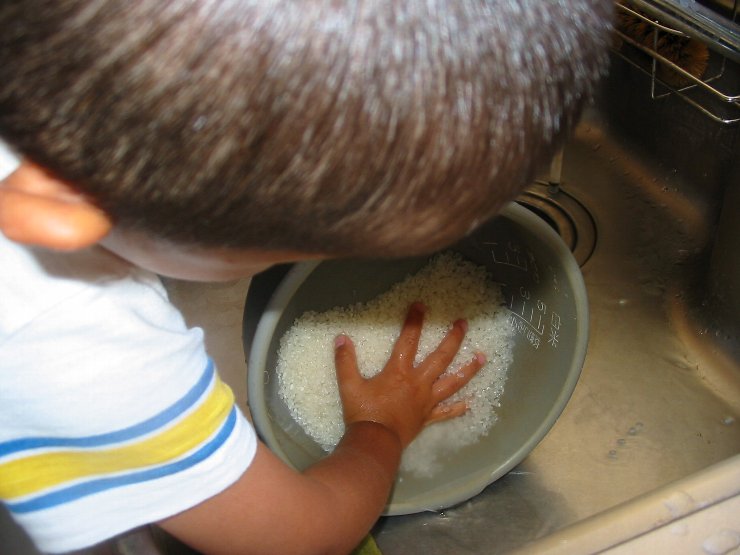 粉を入れ 砂糖、塩、バター 計っていれるのが